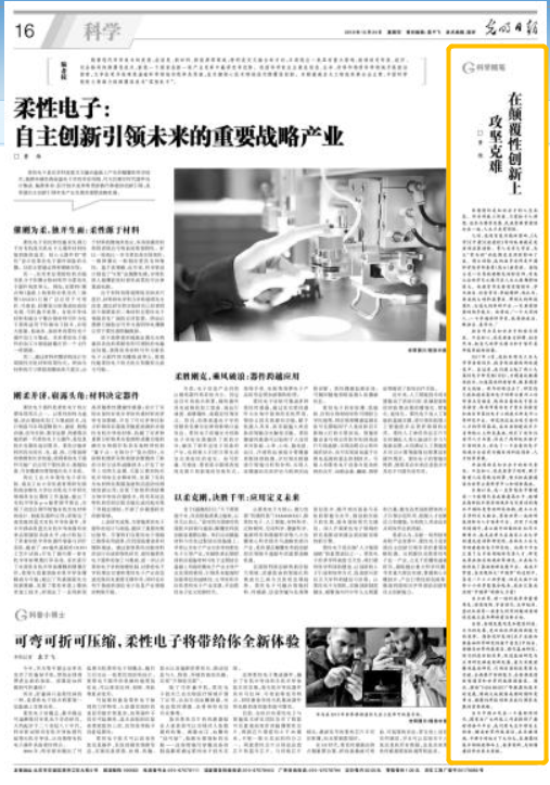 2017年4月,我担任西北工业大学常务副校长,投身到祖国西部的建设中。在这里,我们建立起了西工大柔性电子研究院(IFE),力图通过颠覆性技术,打造高端科技智库,服务国家重大战略。两年时间过去了,研究院已获批建设柔性电子材料与器件工信部重点实验室、陕西省柔性电子重点实验室、西安市柔性电子重点实验室和西安市柔性电子工程技术研发中心等研究平台。研究院还成为吸引海外人才的学科高地,成功启动建设多个省部级以上研发基地,吸引了近百位海外人才加盟,形成了西部地区招才引智的热点,形成了一个在柔性电子领域令全球同行瞩目的科技创新、人才培养重镇。