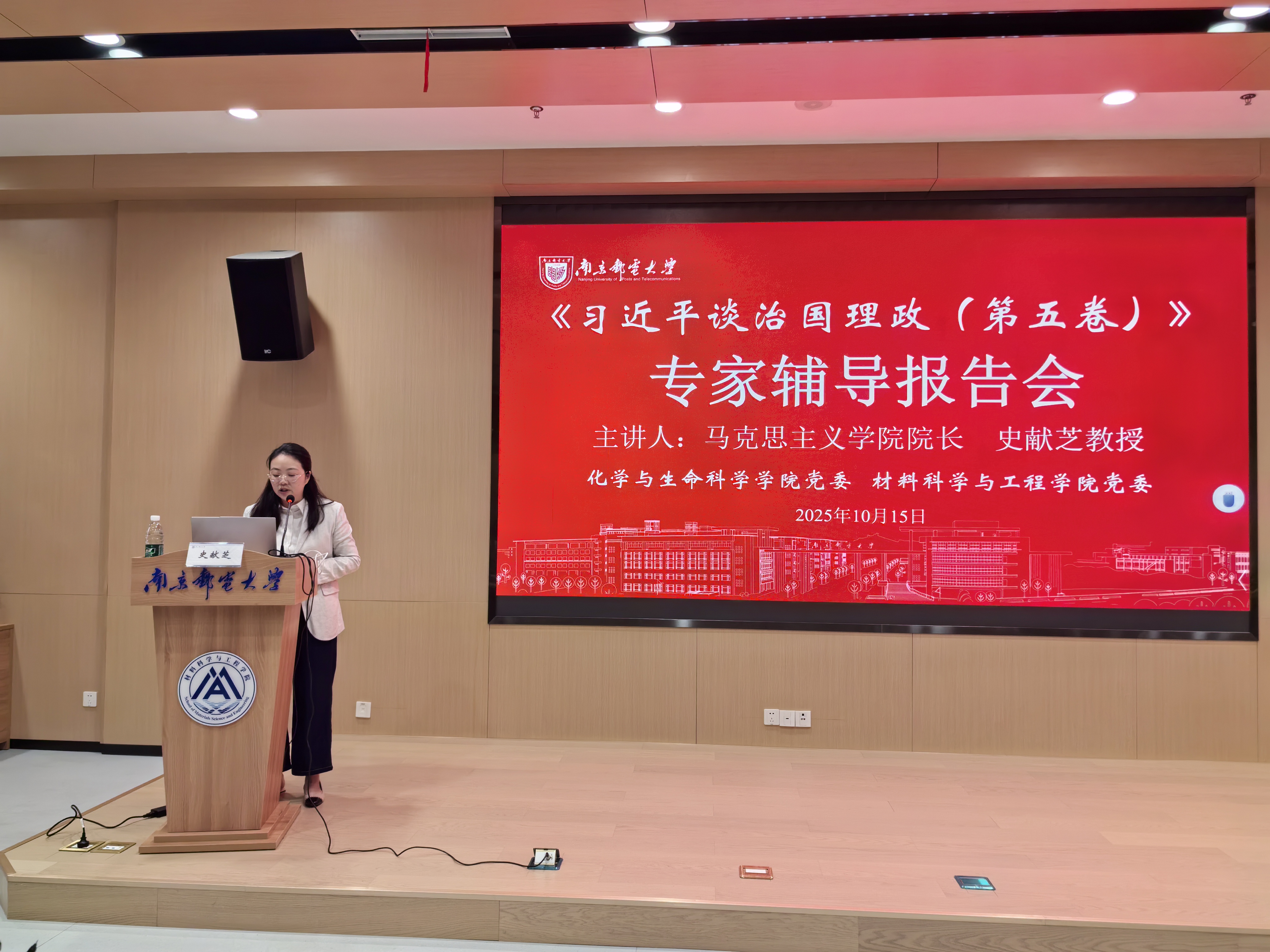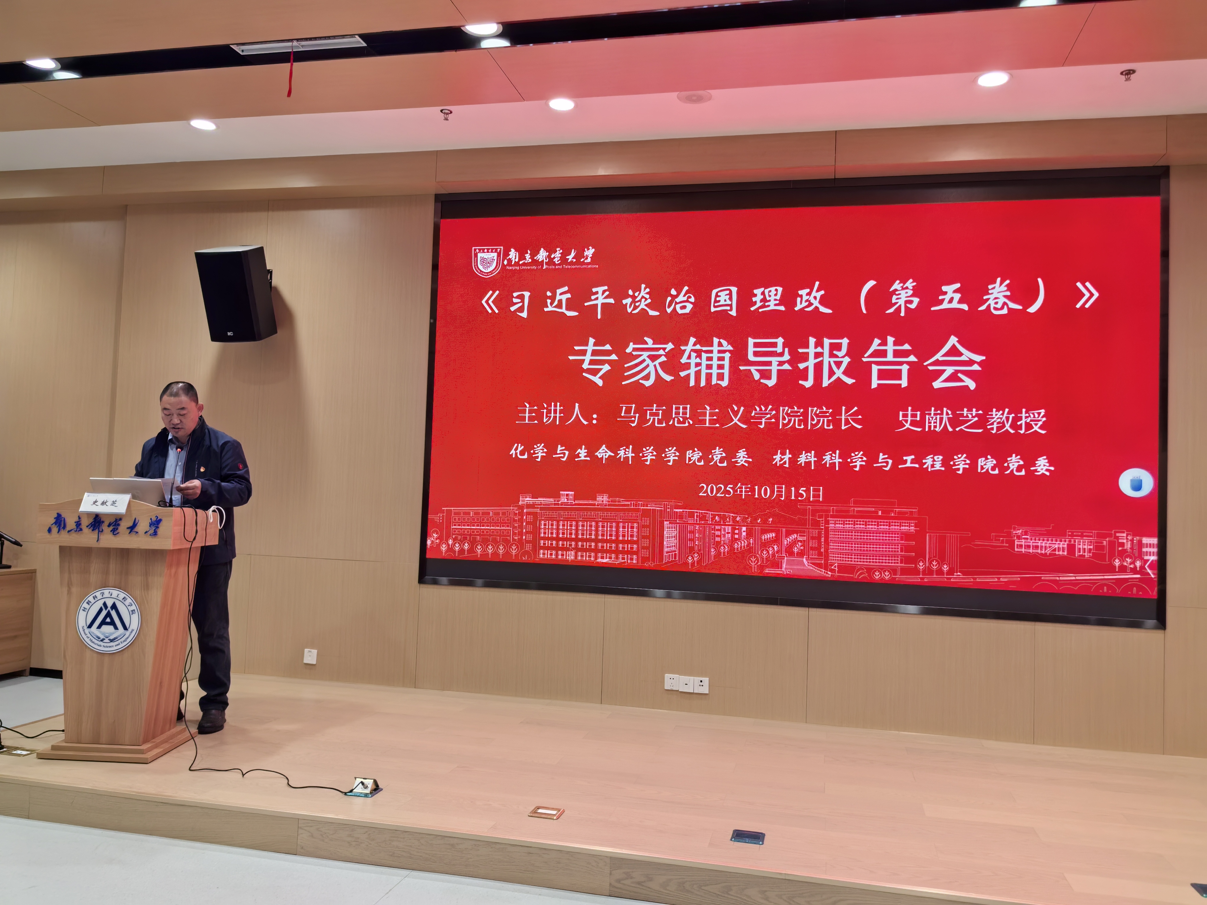 为深入学习宣传贯彻《习近平谈治国理政》(第五卷)重点内容,2025年10月15日下午,材料学院党委与化生学院党委联合组织《习近平谈治国理政》(第五卷)专题辅导报告会,报告会邀请海角论坛 马克思主义学院院长、博士生导师史献芝教授主讲,材料学院党委与化生学院党委理论中心组成员、教师党员及学生党员代表、教师支部积极分子参加了本次报告会。