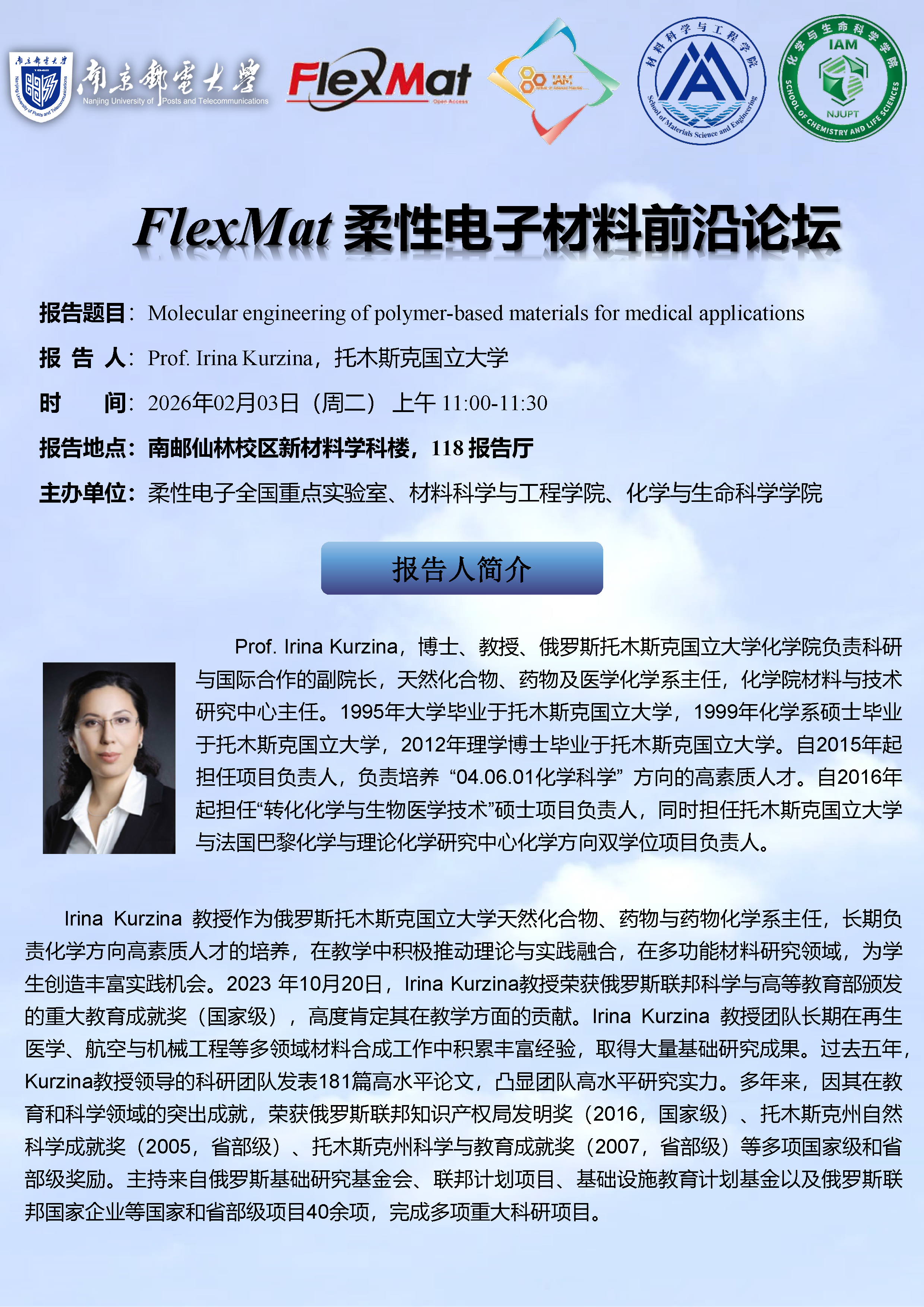 FlexMat柔性电子材料前沿论坛:俄罗斯托木斯克国立大学Prof. Irina Kurzina
