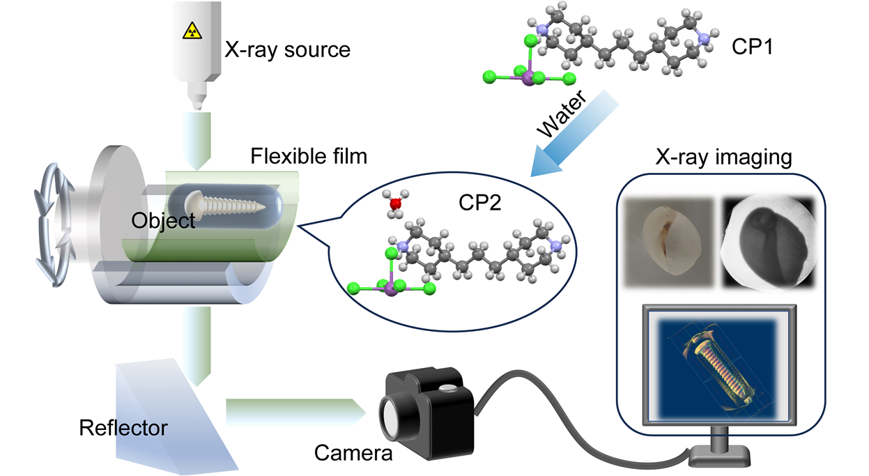 近期,海角论坛 赵强教授和刘淑娟教授领导的研究团队设计和制备了两种高性能有机-无机杂化锑(Ⅲ)卤化物闪烁体,分别为(BPP)₂SbCl₅(CP1)和(BPP)₂SbCl₅·0.5H₂O(CP2),并进一步将CP2与聚合物复合,制成了可用于X射线动态成像与三维成像的柔性闪烁屏。相关研究成果以“Highly Luminescent Organic-Inorganic Hybrid Antimony Halide Scintillators for Real-time Dynamic and 3D X-ray Imaging”为题发表于Light: Science & Applications。柔性电子全国重点实验室刘淑娟教授和赵强教授为论文通讯作者,博士生崔海霞为第一作者。