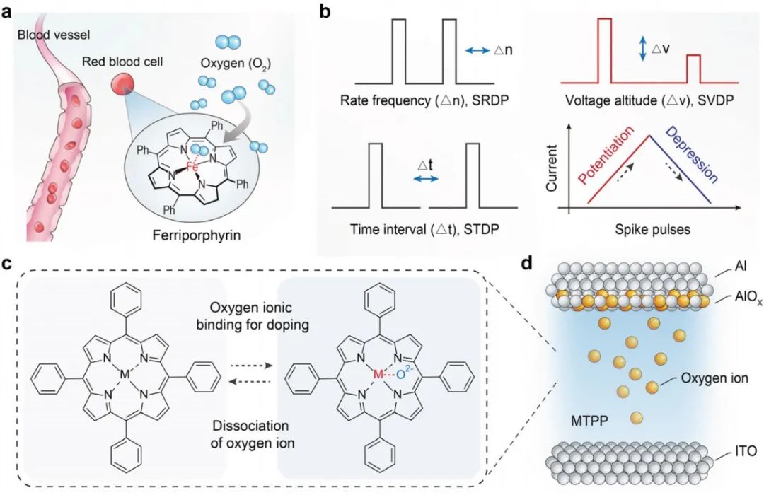 图1基于金属卟啉/氧化物杂化异质结的新型多功能忆阻器的概念