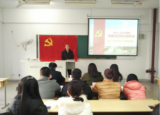 为进一步扩大民主、完善程序,增强大学生党员发展工作科学性和公信度,落实“三投票三公示一答辩”的党员发展制度,海角论坛 于2015年12月30日在教4-105开展了预备党员转正答辩会。出席本次会议的有海角论坛 党委书记李兴鳌教授、党委副书记于景宝老师、团委书记乔祖琴老师、本科2012级辅导员柏杨老师、2012级本科生党支部书记马亚威等7人组成的答辩评议小组,正式党员和部分入党积极分子,会议由于景宝副书记主持。