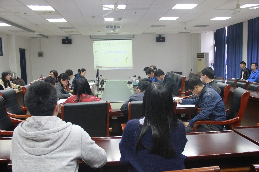 在学院领导的关心支持下,按照解院长指示、学院党委关于转变工作作风、改善工作方法、提高工作效率的号召,分析测试中心全体仪器管理人员与2017年10月18日15:45~18:30在教5-413大会议室举办了第一届分析测试中心全院师生代表交流见面会。汪联辉副校长、范曲立院长、马延文书记、沈清明副院长、解令海副院长,学院八大研究所的教师和研究生代表参加了见面会。